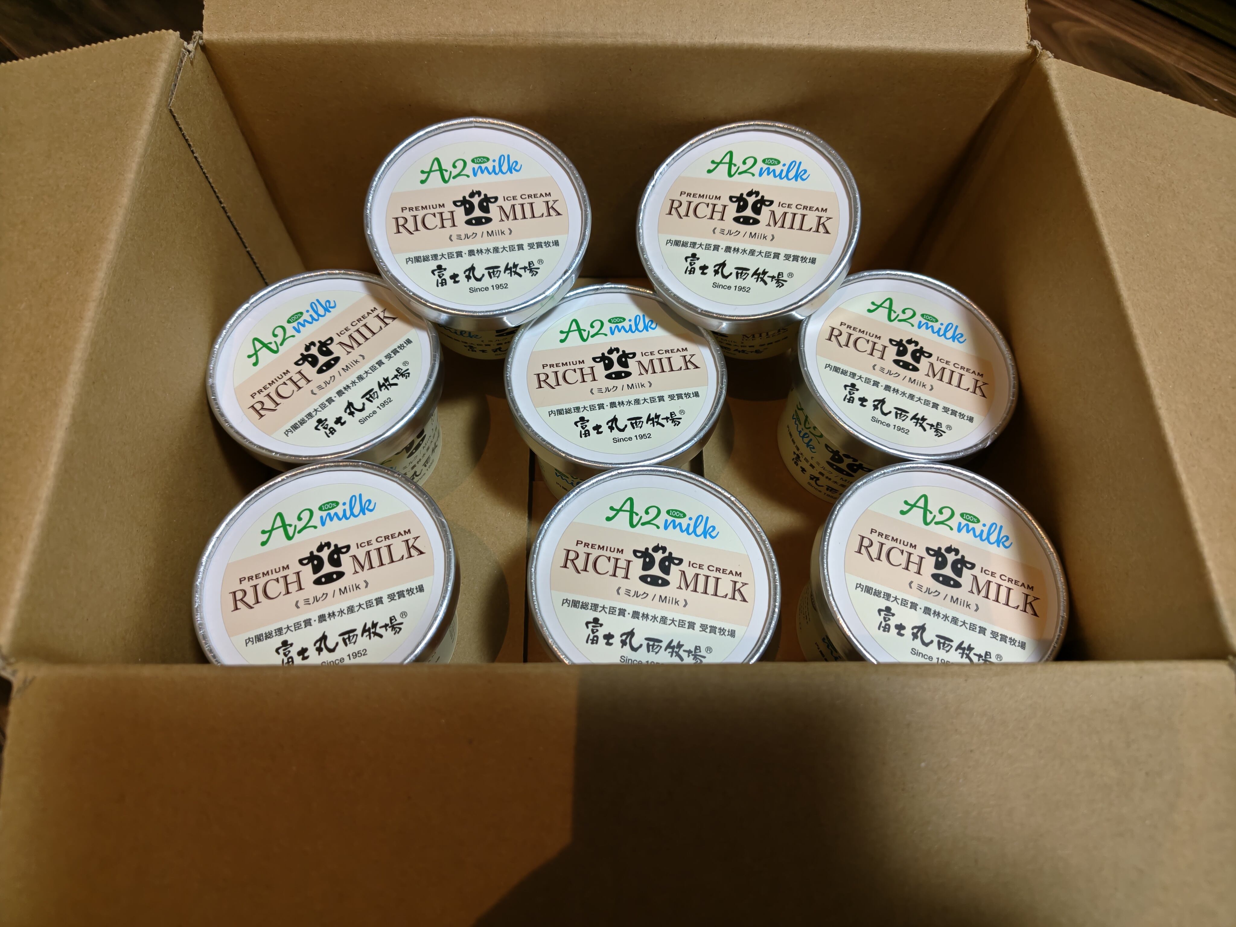 富士丸西牧場の搾りたて放牧A2ミルクを100%使用したオリジナルのカップアイスクリームです。